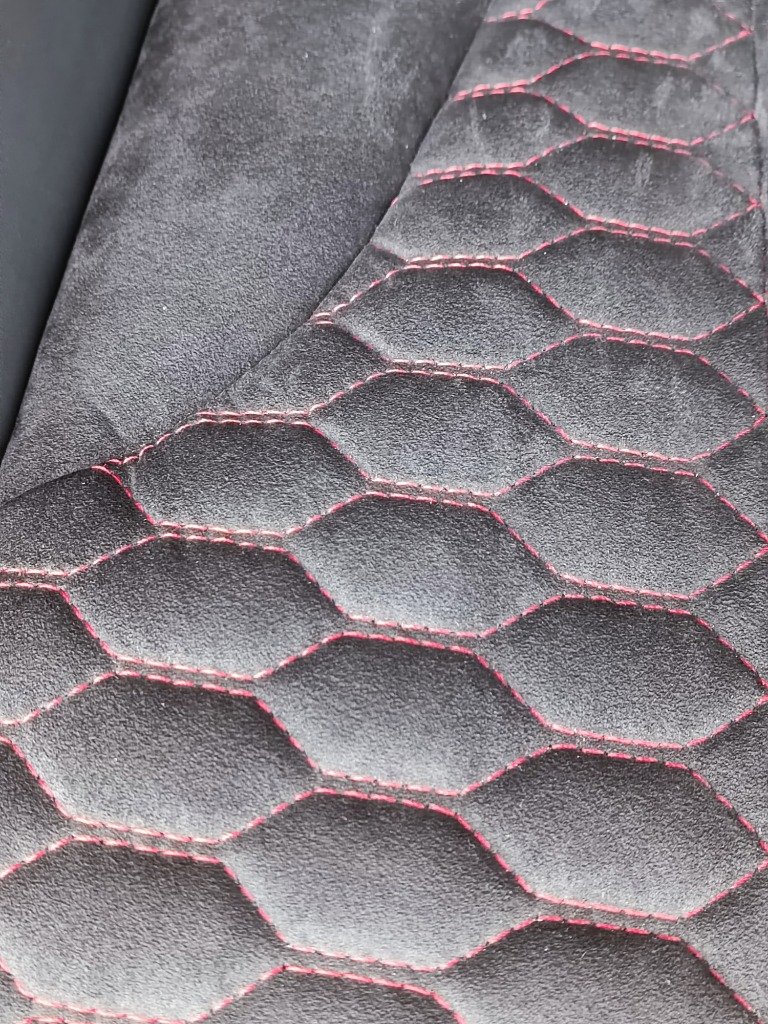 ✅ Sellerie en alcantara et cuir, ornée de surpiqûres rouges pour une touche d’élégance.